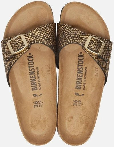 Birkenstock Slippers Madrid shiny python met voorgevormd voetbed, schoenwijdte smal.