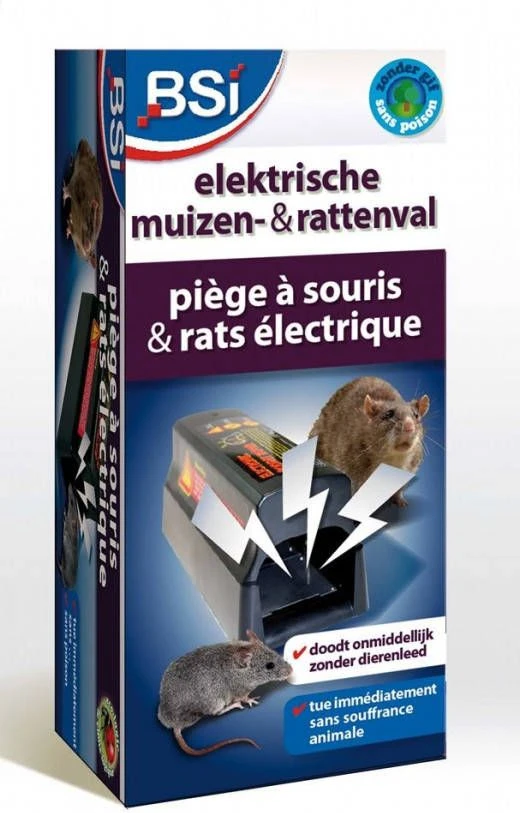 Voor het snel bestrijden van ratten en muizen gebruik je de BSI Elektrische muizen en rattenval.