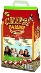 Chipsi FamilyChipsi Family is een bodembedekking die bestaat uit pallets gemaakt van mais. De pallets kunnen tot 4 keer zijn eigen volume opnemen en zorgen dat de kooi van je huisdier goed droog en schoon blijft. Ideaal te gebruiken rondom de drinkbak. * 100% natuurlijk * Aborsbeerd tot 4 keer zijn volume.