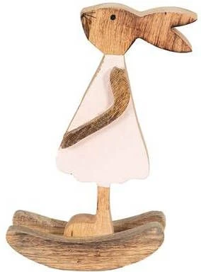 Clayre & Eef Beeld Konijn 14x7x25 Cm Bruin Roze Hout Woonaccessoires Paashaas Pasen Bruin Woonaccessoires Paashaas
