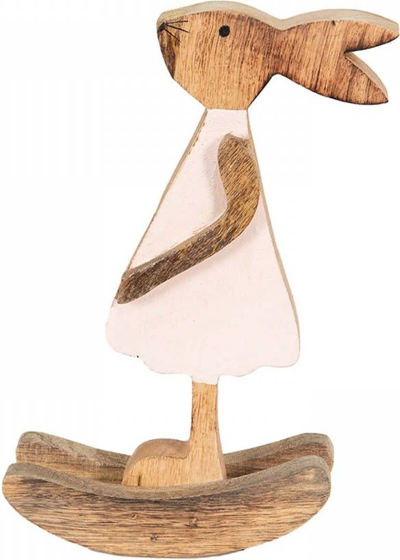 Clayre & Eef Beeld Konijn 14x7x25 cm Bruin Roze Hout Woonaccessoires