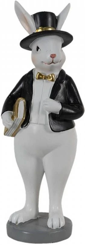 Clayre & Eef Beeld Konijn 7x7x20 cm Zwart Wit Kunststof