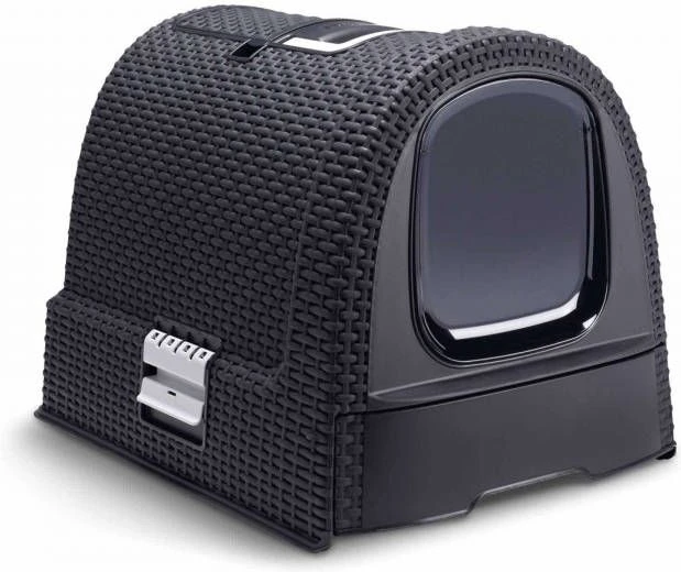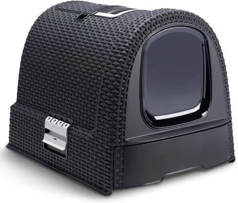 Curver kattentoilet, in de kleur antractiet, van het oersterke materiaal rattan.