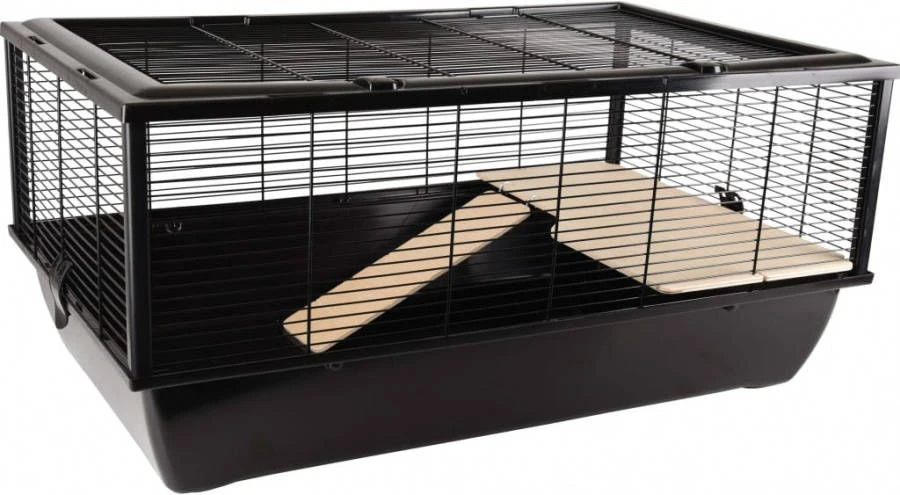 Het trendy zwarte metaal en de mooie houten binnenkant zorgen ervoor dat deze knaagdierenkooi in elk in.