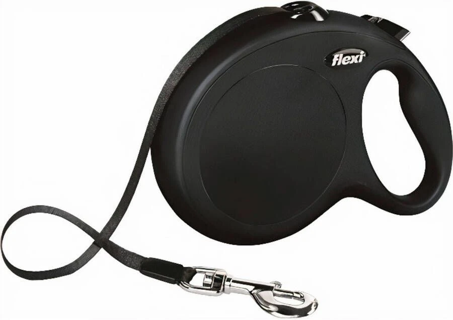 Bij Flexi kan je kiezen tussen lijnen met een koord en lijnen met tape. Het is een persoonlijke voorkeur welke variant je het fijnst vindt. In principe zijn beide soorten even sterk en veilig om te gebruiken. De New Classic Tape bevat een tape.