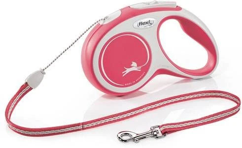 Bij Flexi kan je kiezen tussen lijnen met een koord en lijnen met tape. Het is een persoonlijke voorkeur welke variant je het fijnst vindt. In principe zijn beide soorten even sterk en veilig om te gebruiken. De New Comfort Cord bevat een koord.