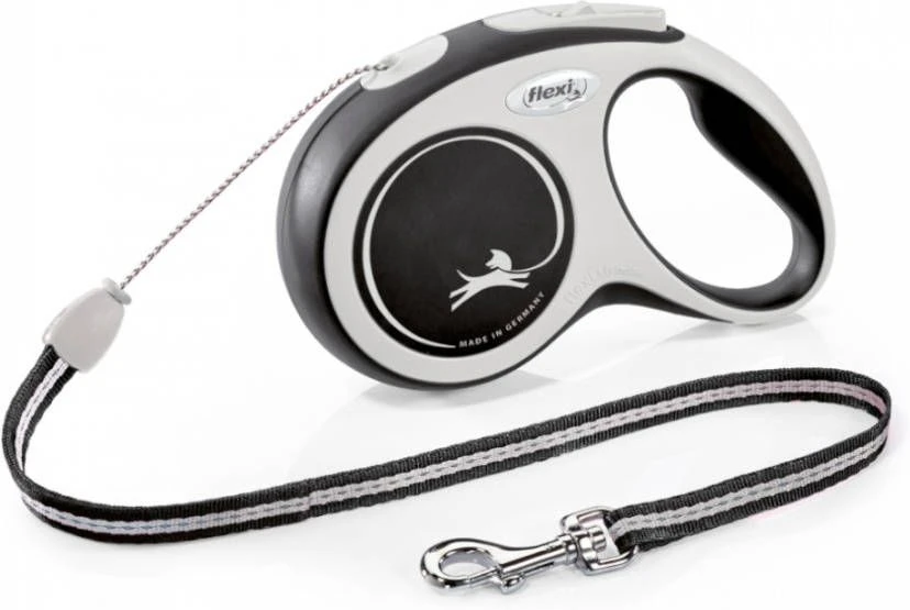 Bij Flexi kan je kiezen tussen lijnen met een koord en lijnen met tape. Het is een persoonlijke voorkeur welke variant je het fijnst vindt. In principe zijn beide soorten even sterk en veilig om te gebruiken. De New Comfort Cord bevat een koord.