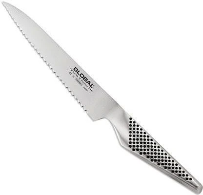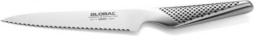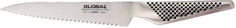 Het GS14 kartelmes van Global is een multifunctioneel mes dat niet alleen voor het snijden van brood gebruikt kan worden, maar ook te gebruiken is voor kroppen sla of kwetsbaar voedsel. Het mes is gemaakt van hoogwaardig staal met een antislip heft.