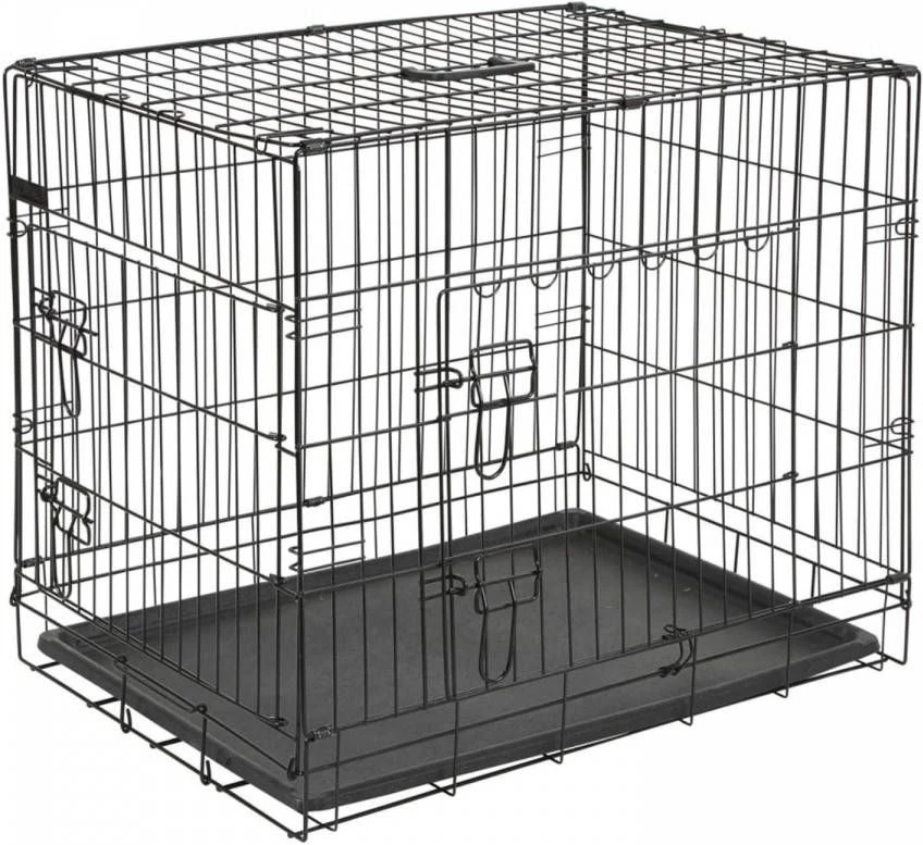 – Met 2 beveiligde toegangsdeuren- Afmeting: 92 x 63 x 74 cm. De hondenbench is voorzien van stevig traliewerk, is inklapbaar en heeft een handige kunststof lade voor het schoonmaken.