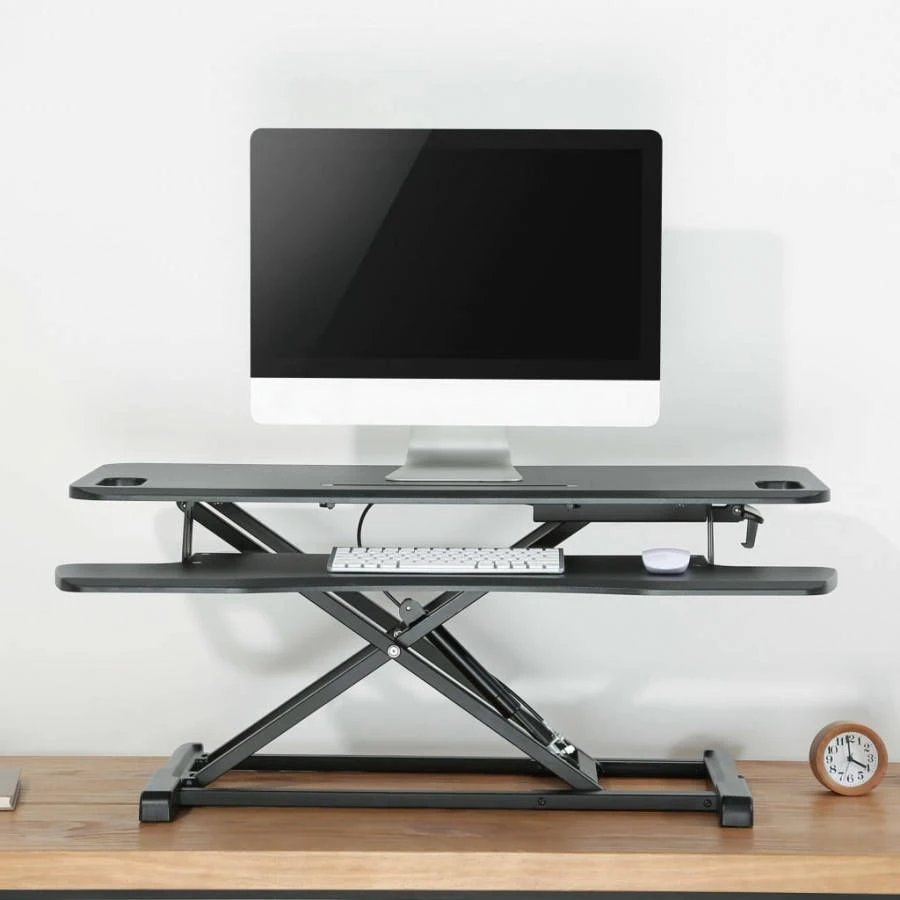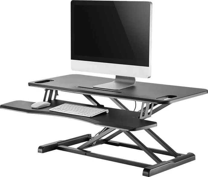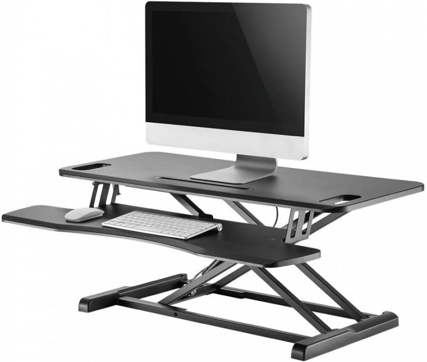 Er mag wel wat afwisseling komen in een zittend beroep. Met de NewStar NS-WS300BLACK krijg je een werkblad voor je computermonitor, toetsenbord en muis, en deze kun je zo verstellen dat je een staande werkplek krijgt.