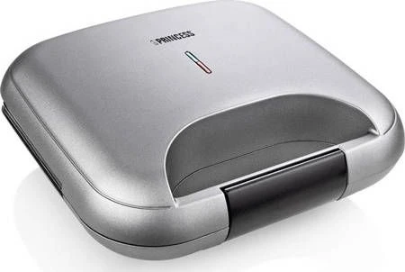 Houd je van goedgevulde tosti’s? Kies dan voor de Princess 127003 Sandwichmaker. In plaats van een voorgevormde vorm heeft dit tosti-ijzer twee grillplaten waardoor je mooie grillstrepen op je tosti krijgt. Ga voor traditioneel met ham en kaas of probeer eens een tosti met brie, stukjes peer en walnoten. Of ga voor pulled pork met barbecuesaus. De mogelijkheden zijn eindeloos. Kwalitatieve antiaanbaklaag Dankzij de hoogwaardige antiaanbaklaag krijg je altijd die perfecte knapperige buitenkant. Je hoeft geen boter of olie te gebruiken, maar het kan natuurlijk wel. Dankzij het vermogen van 750 Watt warmt de Princess Sandwichmaker snel op. Het powerindicatielampje toont precies wanneer het tosti-ijzer op temperatuur is. Zo krijg je die perfecte combinatie tussen gesmolten kaas, ham en knapperig brood. Makkelijk op te bergen De Princess Sandwichmaker is zowel horizontaal als verticaal op te bergen. Het deksel heeft ook een handige vergrendeling zodat het ijzer niet openklapt bij het opbergen. Deze vergrendeling zorgt er ook voor dat je tosti goed aangedrukt wordt. Dankzij het handige snoeropbergsysteem aan de achterkant heb je ook geen last van snoeren die altijd uit je kastje vallen. Makkelijk schoon te maken De hoogwaardige antiaanbaklaag zorgt ervoor dat de Princess Sandwichmaker snel schoon te maken is. Veeg de achtergebleven restjes weg met keukenpapier en neem, als het tostiapparaat is afgekoeld, de platen af met een licht vochtige doek. De RVS buitenkant maak je ook schoon op deze manier.