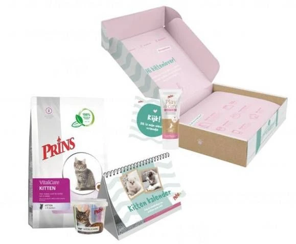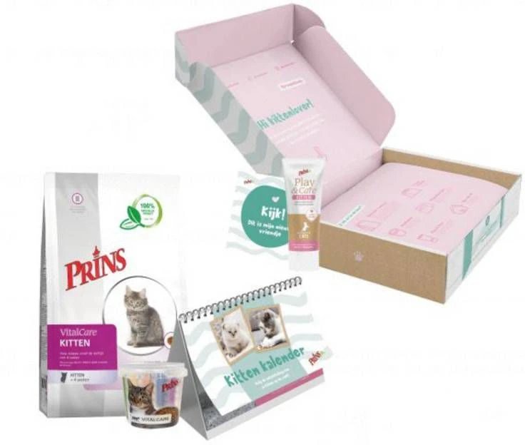 Prins Opgroeibox Vitalcare Kitten Kattenvoer direct bestellen in onze webshop! Laat uw kitten gezond opgroeien met de Prins Opgroeibox VitalCare! Verras uzelf of iemand anders met deze leuke. lekkere en leerzame opgroeibox voor kittens. De opgroeibox bevat onder andere een zak Prins VitalCare Kitten. Play & Care Kitten beloningscrème. een handige kitten kalender én u kunt de box omtoveren in een prachtig kittenhuisje! VitalCare Kitten is een krokante voeding voor kittens vanaf 4 weken tot circa 10-12 maanden. Deze volledige voeding draagt bij aan een gezonde groei. een goed werkend immuunsysteem en een optimale ontwikkeling van botten en gewrichten. Door het hoge energiegehalte is VitalCare Kitten ook bijzonder geschikt voor drachtige en zogende katten..