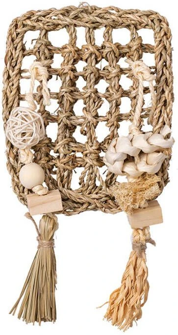 Quapas! Nibble wall- Afmeting: 18x16x5cm Deze 100% natuurlijke mat bestaat uit dennenhout en zeegras. Hierdoor heeft het een positief effect op het gebit en het tandvlees. Door gebruik te maken van natuurlijke materialen is dit geschikt voor zowel konijnen als knaagdieren. Een leuk speeltje om het hok mee te verrijken en er lekkere gezonde snacks in te hangen. .