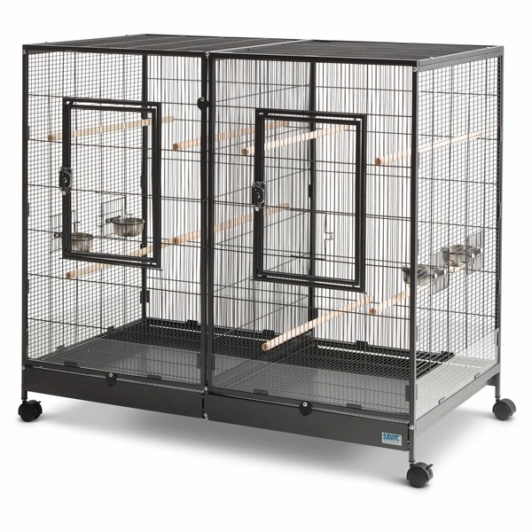 De Tasmania 120 van Savic is een royale volière voor jouw gevederde vogelvriend. Een comfortabel thuis voorzien van verschillende gemakken. De voorzijde van de volière beschikt over twee grote deuren. Door deze deuren kan jij gemakkelijk in de kooi en kan je gevederde vriend de kooi verlaten. De deuren zijn ook groot genoeg voor een mooie landing in de kooi. De kooi komt ook met een handige uitschuifbare lade zodat het verschonen van de kooi extra gemakkelijk is. Door het tralierooster voorkom je dat de vogel, tijdens het afwezig zijn van de lade, kan wegvliegen.