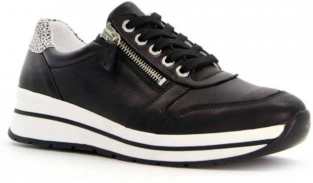Zwarte sneakers voor dames van Hush Puppies. Gemaakt van leer, een binnenwerk van imitatieleer en een stevige profielzool. De sneakers hebben een vetersluiting met ritsje voor een makkelijke instap. Het comfortabele voetbed is gemaakt van imitatieleer. Deze is uitneembaar zodat je je eigen zooltjes in de schoenen kunt dragen. Voorzien van een stippenprint gedeelte op de hak. De sneakers van Hush Puppies hebben een rubberen zool die grip en demping biedt.