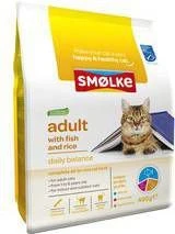 Smolke Kattenvoer voor je volwassen katVoor volwassen katten vanaf 12 maanden tot ongeveer 8 jaar is er Smlke Adult Fish&Rice. Overgewicht is n van de meest voorkomende aandoeningen bij katten en daarom is het van groot belang dat hij of zij precies de juiste hoeveelheden voedingsstoffen en energie binnen krijgt. * Uitgebalanceerde en natuurlijke voeding voor volwassen katten van elk ras * Hoge verteerbaarheid en smakelijkheid * Helpt haarballen, tandplak en blaasgruis voorkomen * Zonder tarwegluten * met 19% duurzaam gevangen vis.