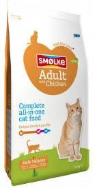 Smolke Kattenvoer Kip en RijstSmolke Adult met Kip en Rijst is een compleet alles-in-één kattenvoer met natuurlijke ingrediënten wat iedere dag weer zorgt voor een blije en tevreden kat. Het is rijk aan kip en bevat alles wat jouw kat nodig heeft om iedere dag in balans te zijn. De juiste hoeveelheden voedingsstoffen en energie zorgen ervoor dat jouw kat een gezond gewicht heeften goed in z’n vel zit. Een speciale mix van natuurlijke vezels helpt de vorming van haarballen bij jouw kat te voorkomen. Daarnaast is Smolke kattenvoer speciaal ontwikkeld om veelvoorkomende problemen zoals gebitsproblemen, huid-en vachtproblemen en urinewegproblemen te helpen voorkomen. * Uitgebalanceerde en natuurlijke voeding voor volwassen katten van elk ras * Hoge verteerbaarheid en smakelijkheid * Helpt haarballen, tandplak en blaasgruis voorkomen.