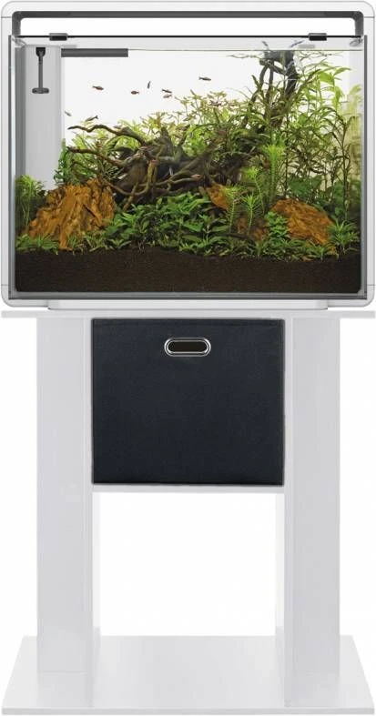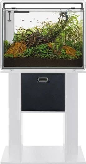 De kast heeft een modern, wit uiterlijk en past daarmee in vrijwel elke (woon)kamer. Met een afmeting van 65 x 31 x 78 centimeter staat je aquarium op een mooie kijkhoogte. Er zijn ook opbergmanden beschikbaar voor dit meubel, waar je je aquariumbenodigdheden in kan opbergen.