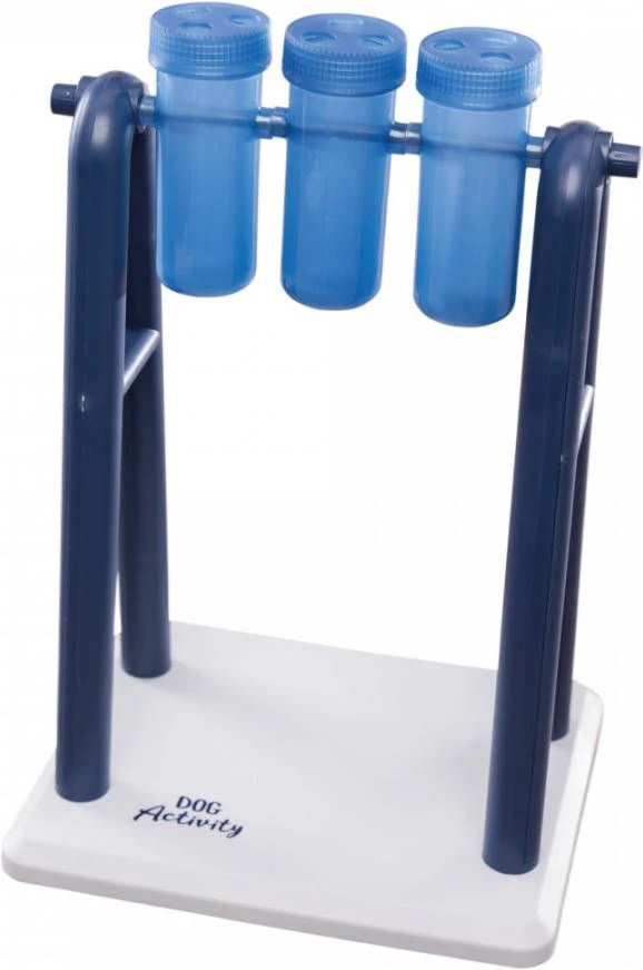 Het spel bestaat uit een standaard met 3 draaibare elementen met elk 2 deksels. Door de gevulde potjes om te draaien kan je hond bij zijn beloning komen, zoals de dagelijkse brokjes of heerlijke snoepjes. Al met al wordt je hond uitgedaagd, eet hij langzamer en eet hij minder, wat allemaal bijdraagt aan een gezonde spijsvertering en een goed gewicht.