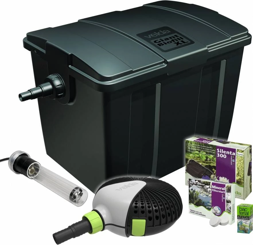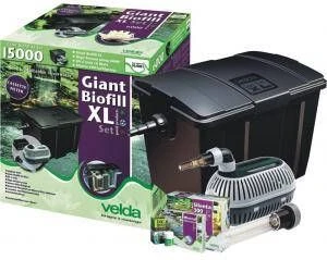 Giant Biofill XL doorstroomfilter set Kristalhelder en gezond water in uw grote vijver is onbetwistbaar met deze Giant Biofill XL set van Velda! Door de combinatie van de doorstroomfilter met UV-C unit, vijverpomp en luchtpomp bent u verzekerd van ee.