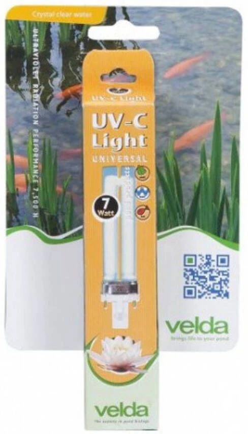 Als uw UV-C Filter een vijverseizoen lang continu in gebruik is geweest, is de lichtopbrengst afgenomen. Het verdient dan aanbeveling de lamp te vervangen. Velda heeft een uitgebreid assortiment: van 5 tot 55 Watt. Het zijn lampen met 30% meer rendement en een 30% langere levensduur dan de gangbare modellen.