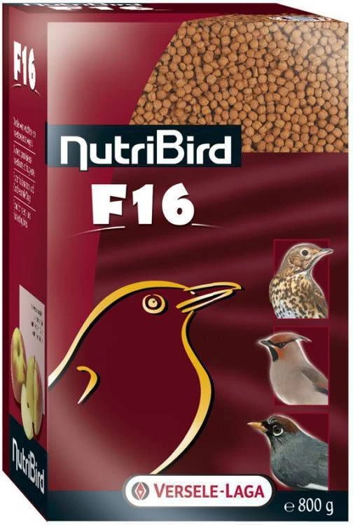 Versele-Laga Nutribird F16 Lijsters/Merels Vogelvoer 800 g direct bestellen in onze webshop! NutriBird F16 is een uitgebalanceerd volledig onderhoudsvoeder voor fruitduiven, lijster- en gaaiachtigen en andere vruchten- en insectenetende vogels. Pellets met een wetenschappelijk verantwoorde samenstelling, op basis van geselecteerde granen en veel verse vruchten. Volledig opneembaar, geen verlies. Bevat Florastimul: ondersteunt de darmflora en behoedt tegen darmstoornissen. Volledig uitgebalanceerd voeder met alle voedingsstoffen die jouw vogel nodig heeft. Door de pellets is selectief eetgedrag niet mogelijk en krijgt jouw vogel alle nodige voedingsstoffen. Wetenschappelijk verantwoorde samenstelling.