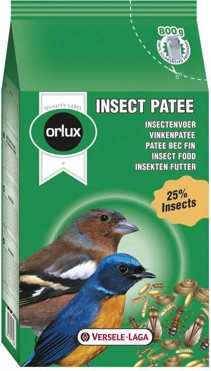 Versele-Laga Orlux Insect Patee is compleet voeder voor alle insectenetende vogels. Dit smakelijke voer bevat een hoog gehalte aan dierlijke eiwitten en 25% insecten.