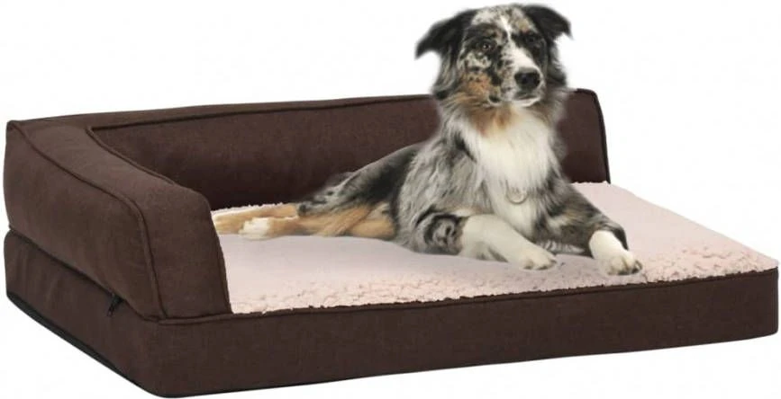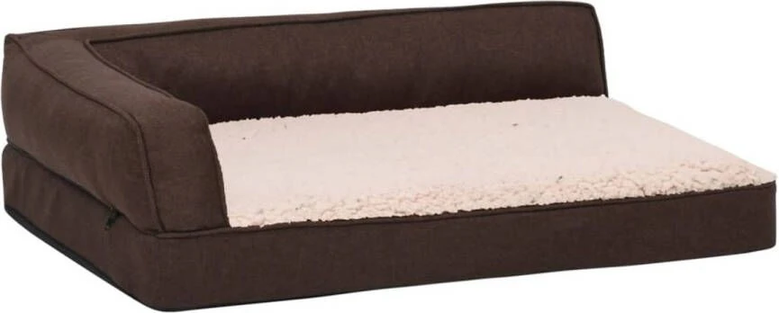 VidaXL Hondenbed Ergonomisch Linnen look 75×53 Cm Fleece Bruin
