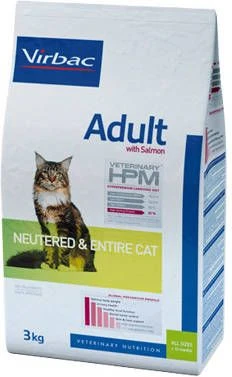 Adult Neutered & Entire Cat van Veterinary HPM is volledige voeding geschikt voor volwassen, gesteriliseerde en niet gesteriliseerde katten met een leeftijd van 12 maanden. HPM Veterinary kattenvoeding is een nieuwe lijn gezondheidsvoeding van Virbac.