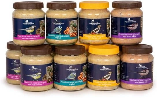De Vogelbescherming Vogelpindakaas Mixdoos bevat meerdere varianten verantwoorde Vogelpindakaas, ontwikkeld in samenwerking met Vogelbescherming Nederland.